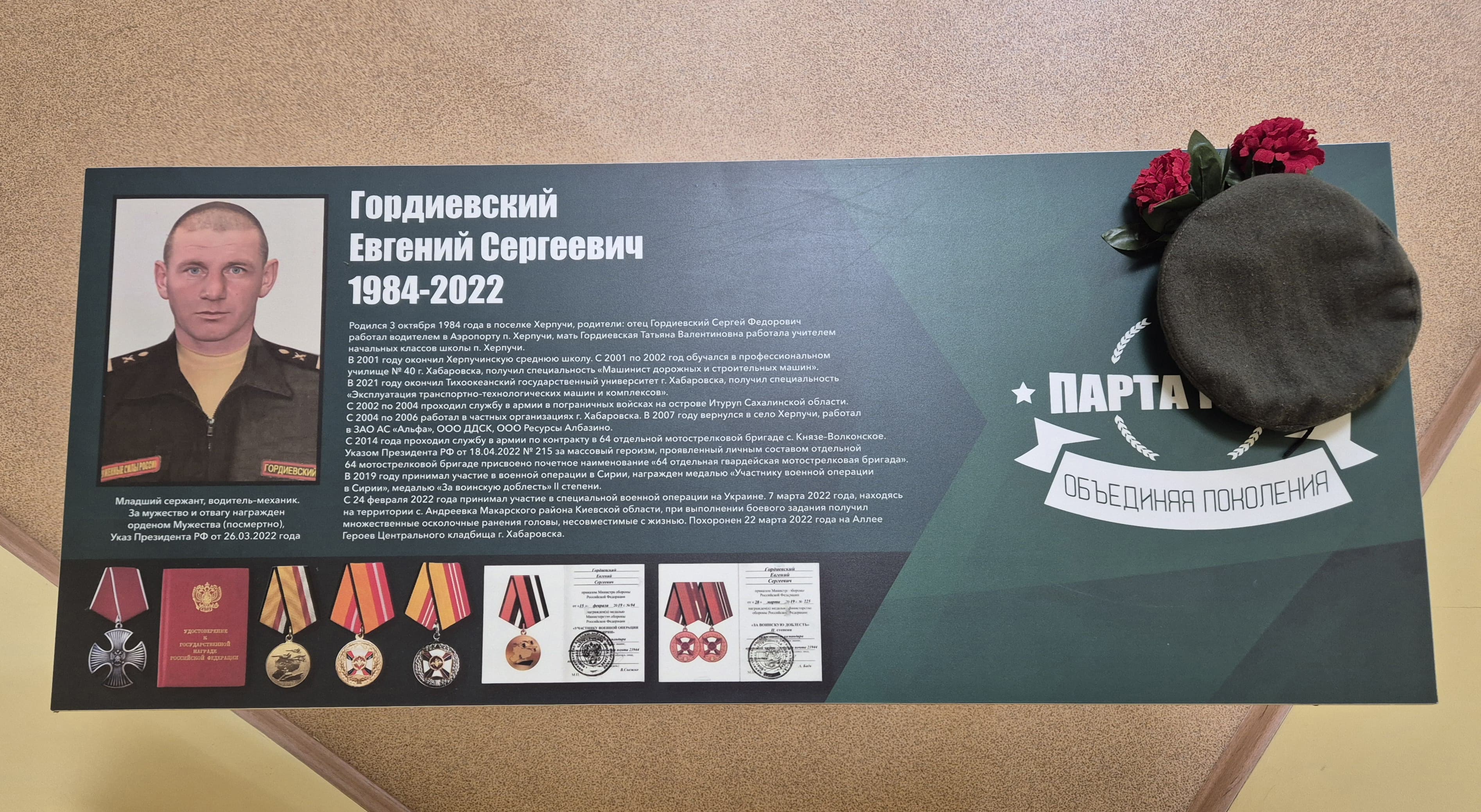 В Ягодинской средней школе открыта «Парта Героя» имени Пакишева Филиппа Андреевича.