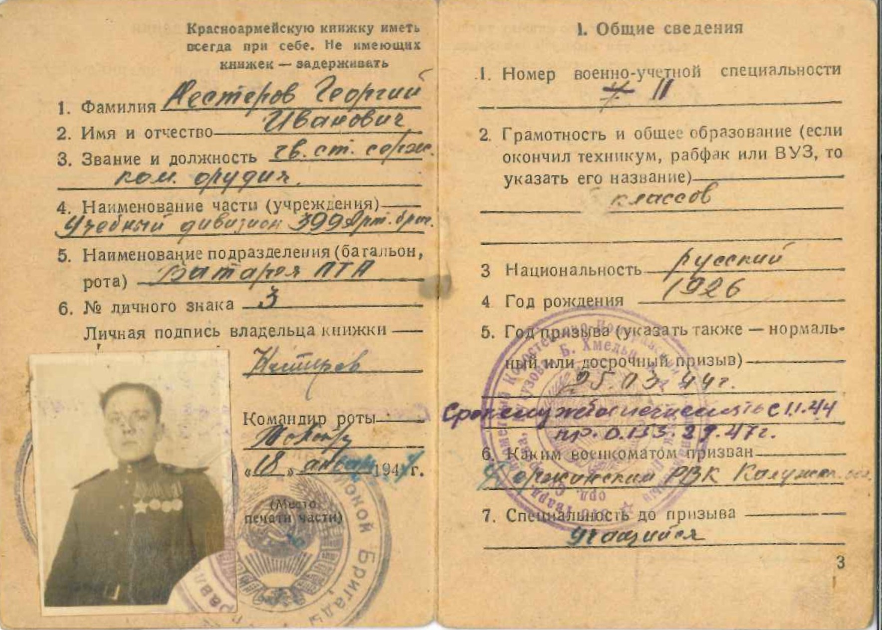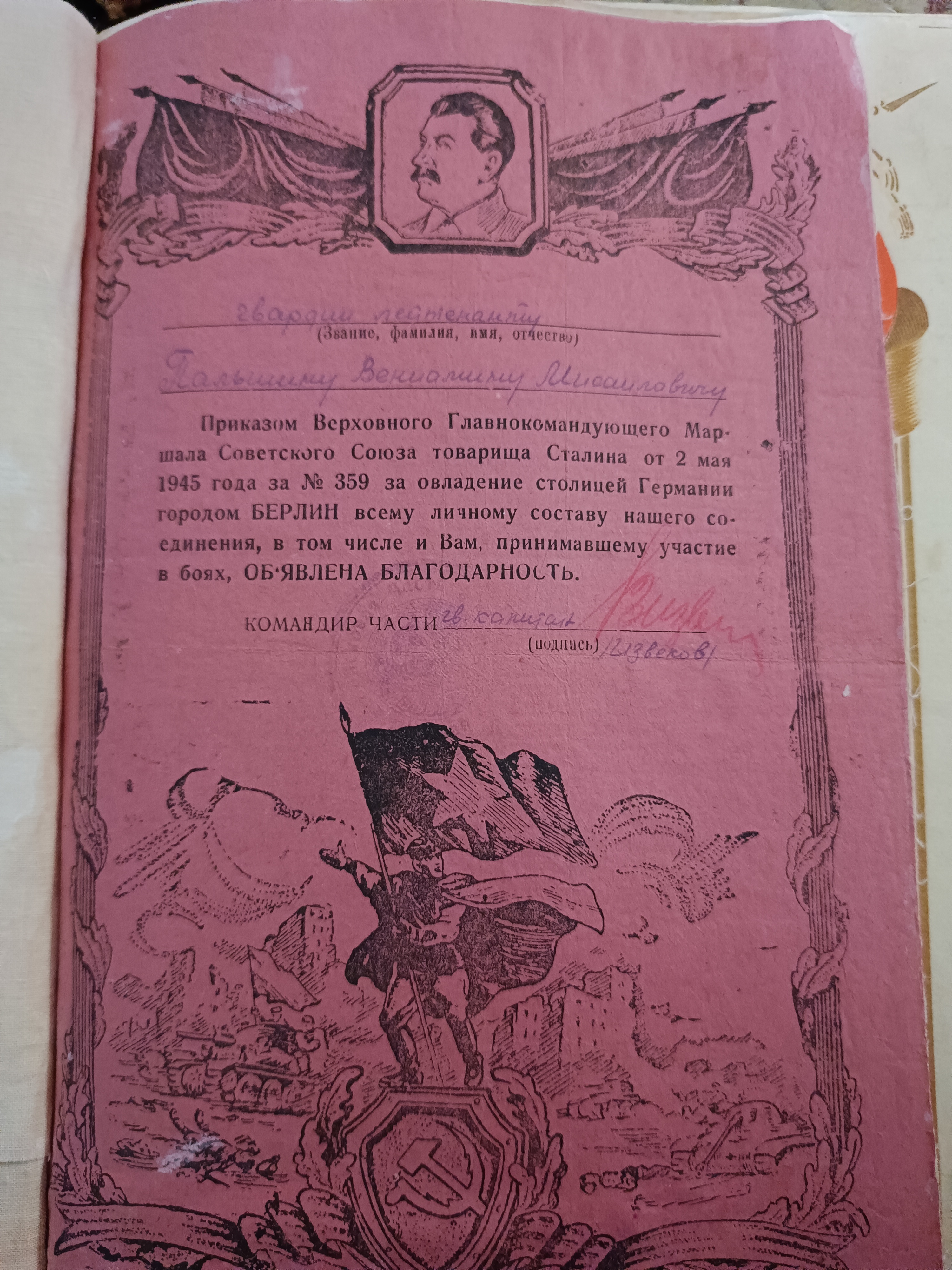 Воинское звание – гвардии младший сержант.