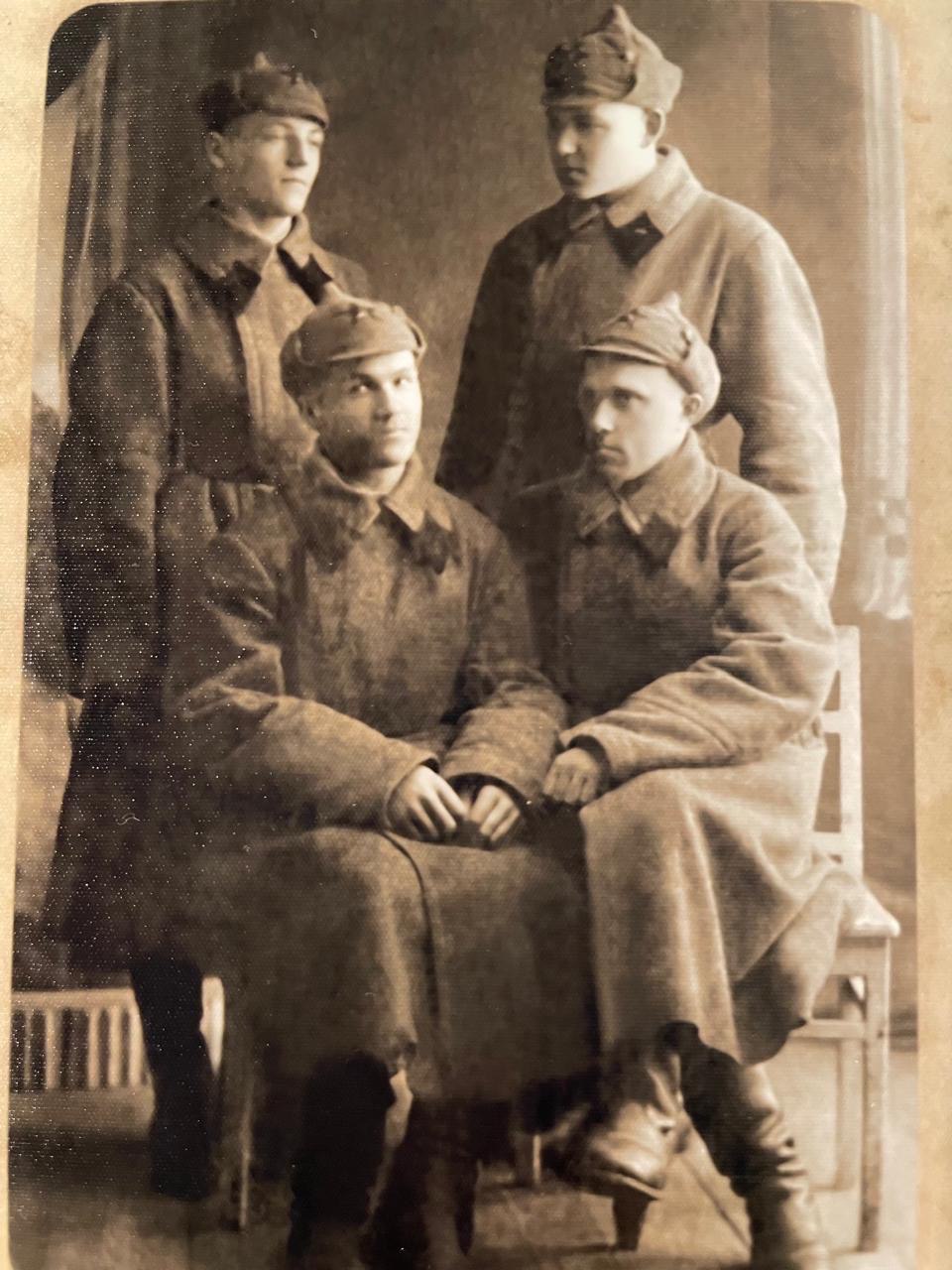 С сослуживцами после призыва в РККА. Реут М.А. стоит слева. 1939 г.