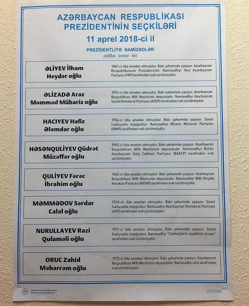 11 апреля 2018 года граждане Азербайджана выбирали главу государства.